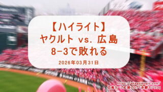 カープ動画ハイライト 【カープハイライト動画】ヤクルト戦 8-3で敗れる(2026年03月31日)