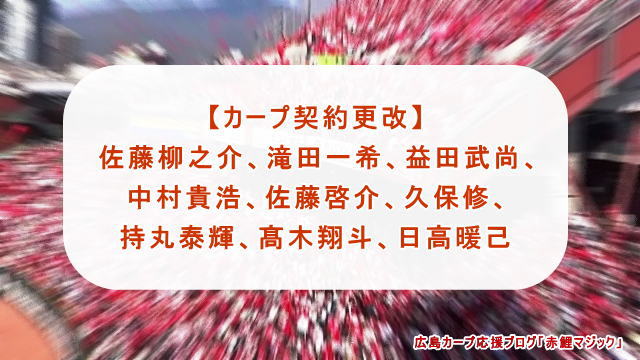 - 『佐藤柳之介、滝田一希、益田武尚、中村貴浩、佐藤啓介、久保修、持丸泰輝、髙木翔斗、日高暖己』が契約更改を行いました。