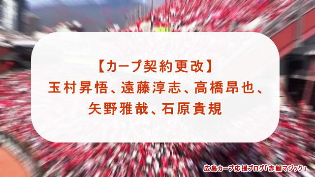 - 『玉村昇悟、遠藤淳志、高橋昂也、矢野雅哉、石原貴規』が契約更改を行いました。