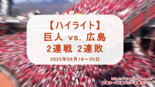 カープ動画ハイライト 【カープハイライト動画】巨人 2連戦 2連敗(2025年09月19~20日) 更新情報『【ハイライト・9/20】巨人クライマックスシリーズ進出決定!岡本2試合連続HR&浦田東京D初タイムリー【巨人×広島】』を再生リストに追加しました。『【ハイライト・9/19】巨人接戦を制す!先発・山﨑伊織 自己最多11勝&2安打3打... 2025.09.20 カープ動画ハイライト